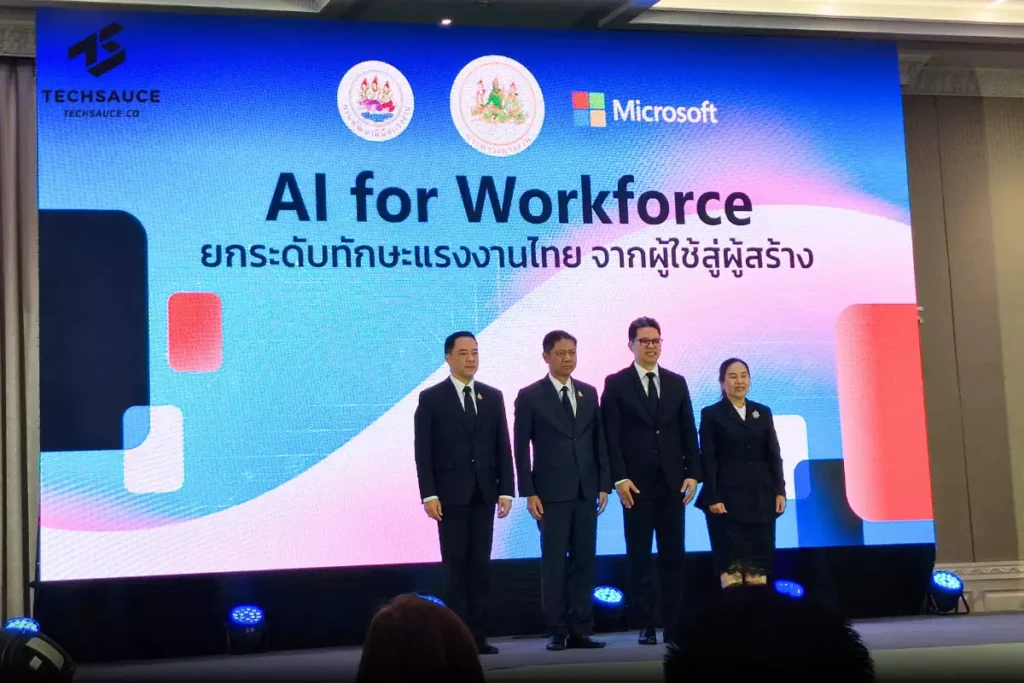 ไมโครซอฟท์ ประเทศไทย จับมือ กระทรวงแรงงาน ประกาศความร่วมมือครั้งสำคัญเพื่อเร่งสร้างแรงงานไทยที่มีความพร้อม เพิ่มศักยภาพแข่งขันในยุค AI โดยพัฒนาฝีมือแรงงานภายใต้โครงการ AI for Workforce เพื่อผลักดันประเทศไทยเข้าสู่ยุค Workforce 5.0 อย่างเต็มตัว โดยเดินหน้ามอบทักษะ และประกาศนียบัตรซึ่งเป็นที่ยอมรับในอุตสาหกรรมให้กับแรงงาน 150,000 คนทั่วประเทศ